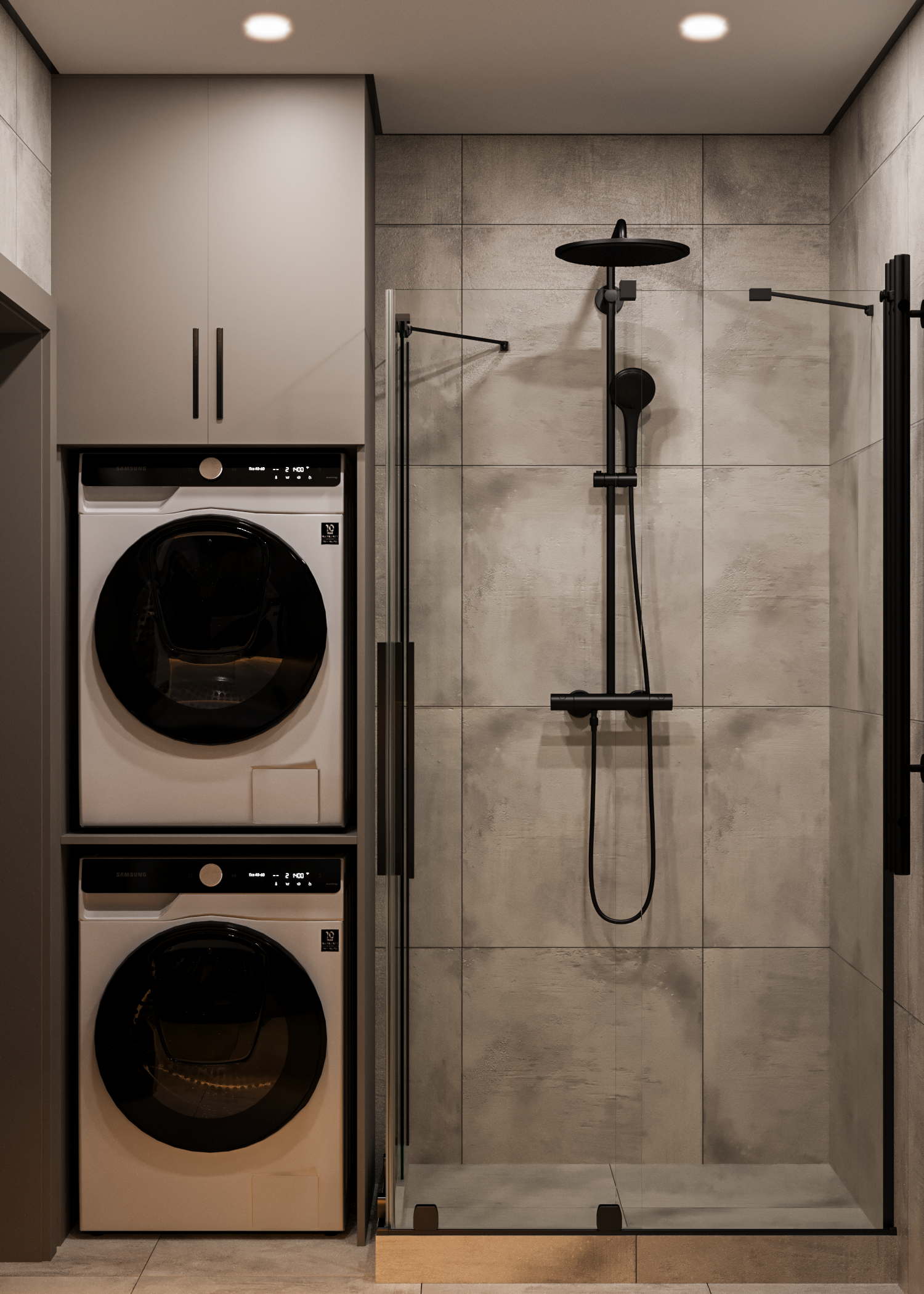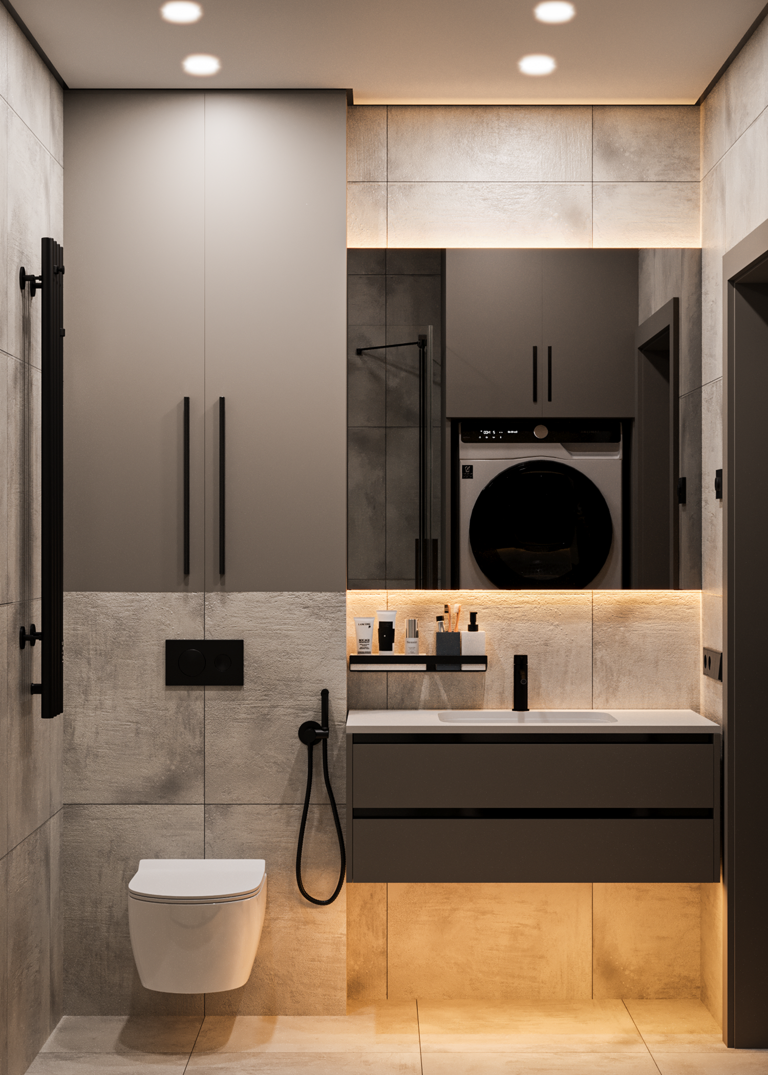 Дизайн санузла с постирочной зоной. г. Москва 2023 г.